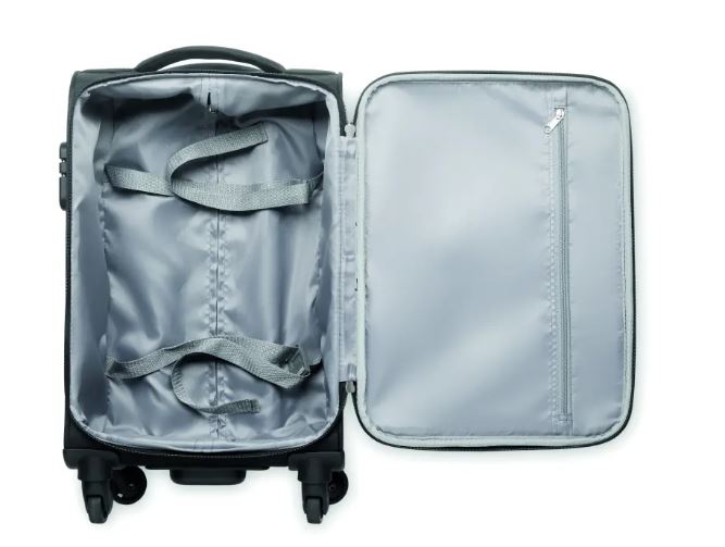 Stylowa, funkcjonalna walizka wykonana z materiału rPET. Wyposażona w zewnętrzną komorę na laptopa i przednią kieszeń na dokumenty, lekka, a jednocześnie wytrzymała dzięki podwójnej ramie i wzmocnieniom. Idealna do podróży w zgodzie z naturą.